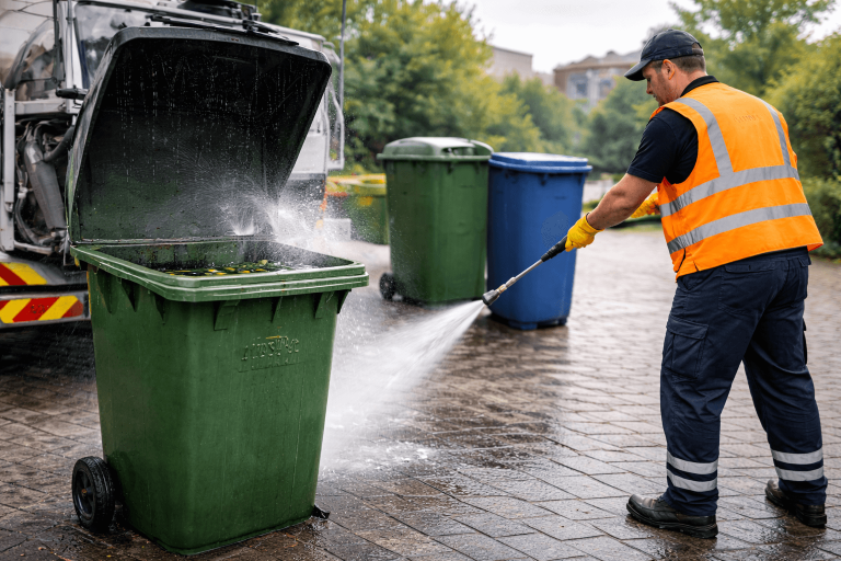 Professionelle und hygienische Reinigung von Mülltonnen aller Art – gründlich, umweltfreundlich und zuverlässig.