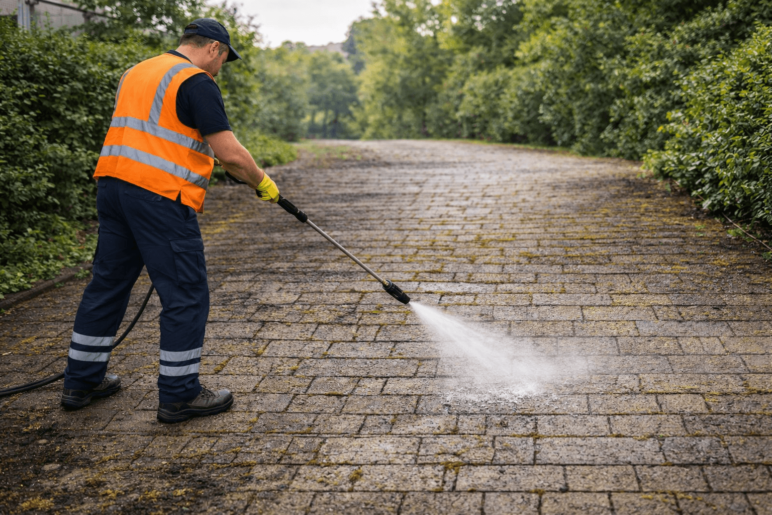 Mit der Zeit setzen sich auf Pflastersteinen, Gehwegen und Einfahrten Moos, Algen, Schmutz und Ablagerungen fest. Diese Verschmutzungen beeinträchtigen nicht nur die Optik, sondern können bei Nässe auch rutschig und gefährlich werden.